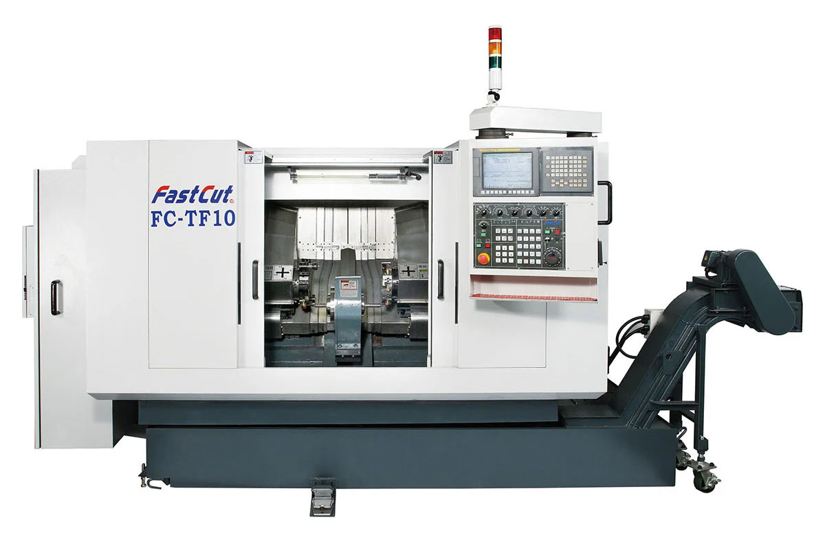 Single spindle, Two turrets, Twin CNC System Two turrets can operate simultaneously and carry out different cutting process on both ends.